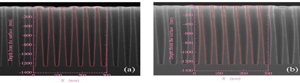 X-Z断面の比較(a)ウェーハ中央部、(b)ウェーハ端部