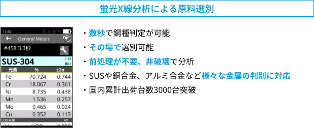 スクラップ鉄の再利用を促進するには、原料の高度な選別や、製造過程における元素管理が不可欠です。この原料選別の工程管理に、試料の前処理なしで迅速な元素分析が可能な蛍光X線分析を活用することで、鉄鋼製品の品質向上と資源の最適利用を実現し、持続可能な社会の構築に貢献します。